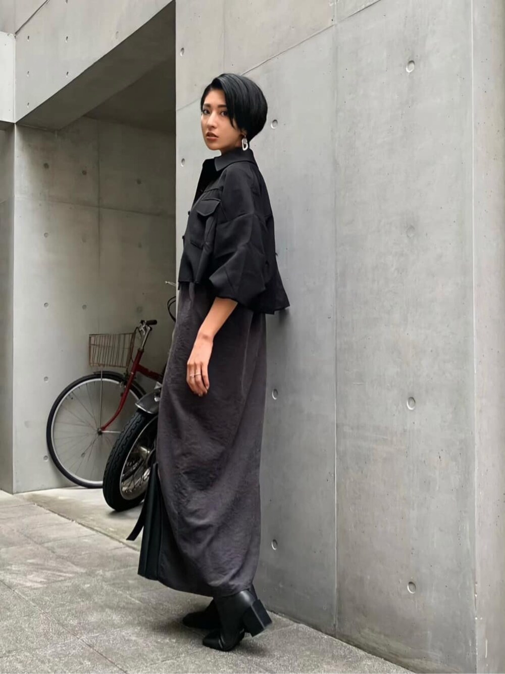 永田悠莉(EMODA)のワンピース「ダブルストラップロングキャミワンピース」を使ったコーディネート