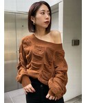 ほわほわニット♡ローゲージ編みで、ドレープが綺麗に出るようにしています☺︎ネック部分を下げてオフショルでの着用も◎少し透け感があるので、ブラトップ等のインナーを着用してください☺︎ボトムスはタイトなスカートやパンツを合わせてメリハリのあるスタイリングがオススメ✌︎私は大人っぽく黒スキニーを合わせました☺︎こちらもEMODAで大人気のELDERシリーズ♡3種類あるので、是非店頭でも履き比べてみてください♪