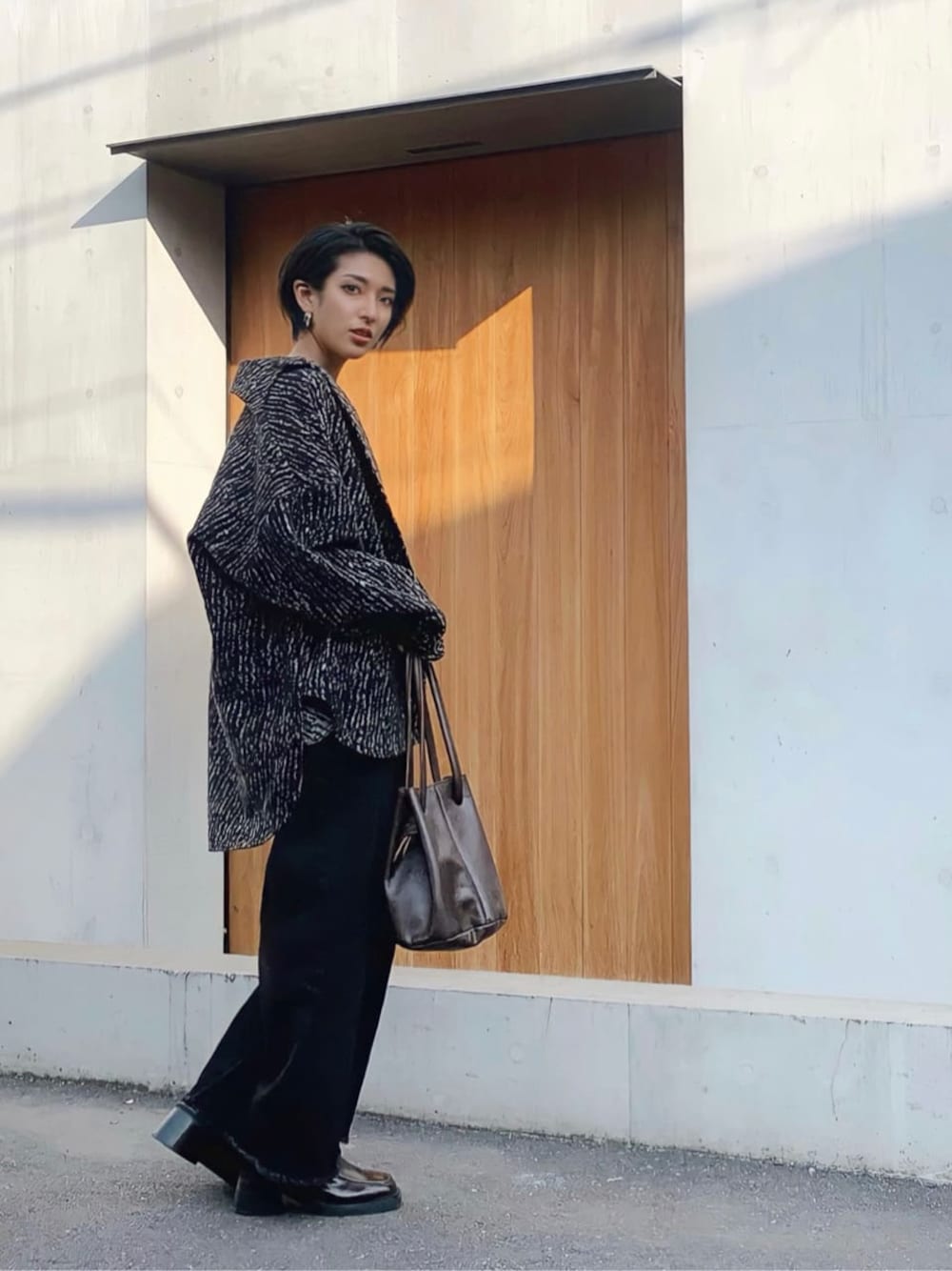 一押しアウター♡今回はこちらの柄を着てみました☺︎黒ベースなので、柄でも落ち着いた大人っぽい印象になります♡♡デニムのマキシスカートを合わせたので、インナーはタイトなキャミをチョイスしました♪軽くて持ち運びしやすいので、季節の変わり目〜冬まで大活躍します✌︎履いているブーツは、アッパーから筒まである芯の入ったラインが特徴的で、シルエットがとても綺麗‼︎ヒールが低めなのでとても歩きやすく長時間のお出かけにもぴったりです☺︎★