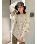 存在感抜群のフリンジニット♪ローゲージ編みでざっくりしたシルエットと、袖部分のフリンジが可愛らしく女性らしい印象にしてくれます☺︎オーバーサイズなので、ボトムはタイト目にするとバランス良く着こなせます✌︎私は定番のフレアパンツを合わせました♡ウエストはゴム仕様なので履き心地も◎もちろん美脚効果抜群です‼︎
