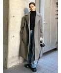これだけでモードで大人な印象に♡オススメのドロップショルダーロングコートです‼︎襟が大きくオーバーサイズなので小顔効果が本当にすごい✌︎厚手のニットやトレーナーも中に着込めます☺︎フリーサイズですが、身長160cmでも丁度いい丈感でした♪小柄な方で、丈が気になる場合は厚底と合わせるとバランスとりやすいです☺︎スカートにミドルブーツを合わせて女性らしくしても可愛いですね♡私はフレアデニムを合わせて大人カジュアルなスタイリングにしました♪こちらのデニムも程よくダメージ加工が施してあり、ヴィンテージ風の色味なのでこれ1つでオシャレに見えます♡もちろんハイウエストなので脚長効果も◎今回着用しているようなショート丈のニットと合わせたり、長めのニットを前だけインしても可愛い♡ちなみにこちらのニットは、アシンメトリーな着丈がポイントです✌︎シンプルながらもデザイン性があり、他とは被らないEMODAらしい1枚です‼︎落ち着いたカラー展開なので、合わせてチェックしてみてください♡♪