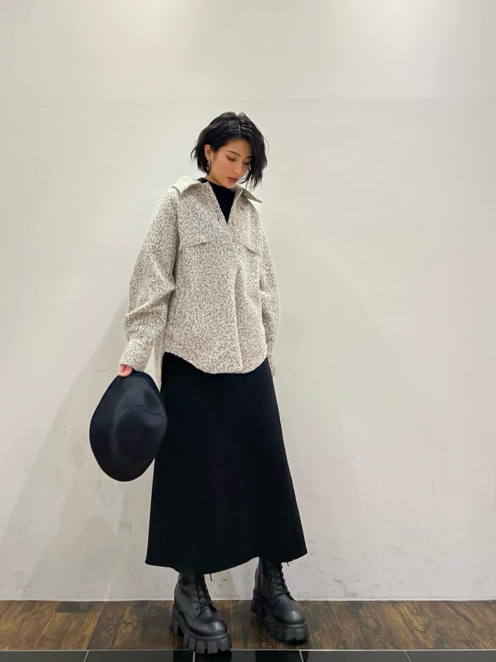 永田悠莉(EMODA)のワンピース「リブハイネックマキシニットワンピース」を使ったコーディネート