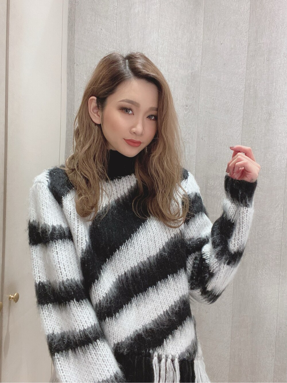 yukina(GYDA)のニット/セーター「original pattern fringeニット TOPS」を使ったコーディネート