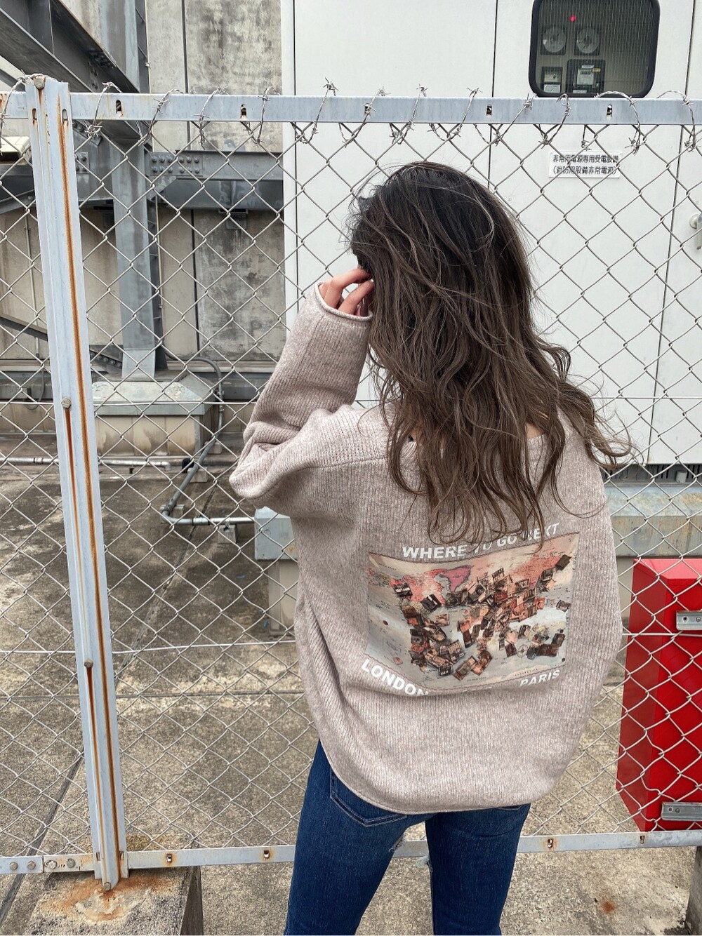 GYDAオリジナルの大きめなグラフィックが入ったニットです。 ゆったりとしたシルエットなのでスキニーやショートボトムなどタイトなボトム合わせがすっきり見えておすすめです◎フロント部分は無地になってるので、シンプルになり過ぎないよう、GYDAならではのダメージデニムと合わせてみました!