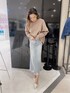 GYDAならではのBACKプリントが印象的なスウェットトップス。ドルマンでゆったりとしたシルエットですが前が短めになっているのでロングスカートと合わせて頂いてもすっきりオシャレに着て頂けます。薄手なので、これから春先にかけて大活躍間違いなしの1枚です。 スカートは毎年人気のサイドスリットスカートです。今季は今までと違いお尻のダメージを無くしておりより幅広い方に着用して頂きやすいデザインになっております。