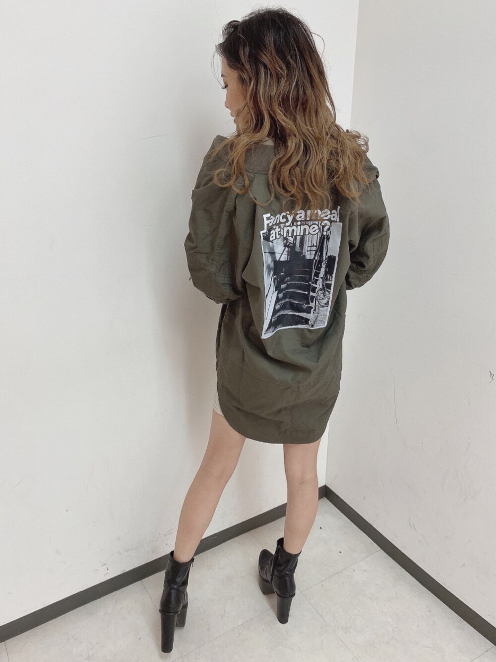 yukina(GYDA)のブルゾン「back photoロングブルゾン」を使ったコーディネート