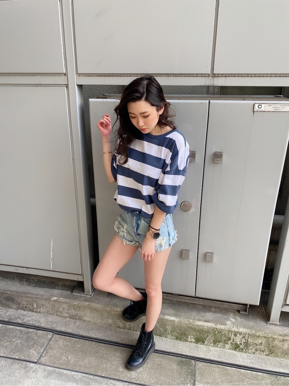yukina(GYDA)のデニムパンツ「J/Wダメージデニムショーパン」を使ったコーディネート