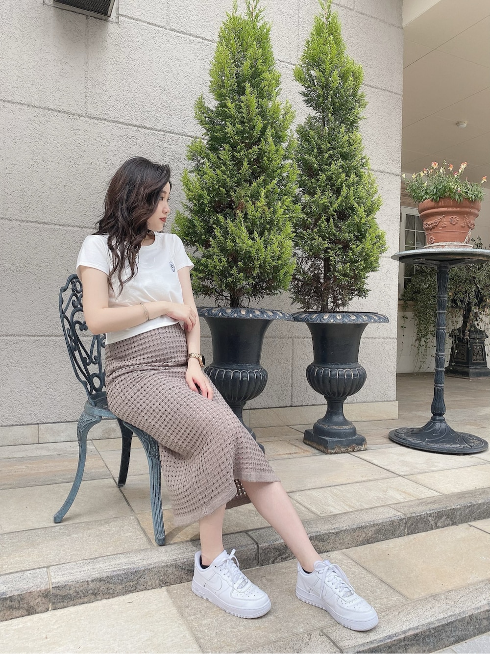 マタニティコーデ⸜❤︎⸝ ウエストがゆったりのクロシェスカートは締め付け感がないので妊婦さんでも履きやすい1枚です。ハイウエストなのでショートトップスと合わせてもお腹見えなくて安心して着て頂けます!丈感も程よく、足首が出るのでスニーカー合わせでも脚が細く見えるのもポイントです!身体のラインが出るのが苦手な方はゆったりとしたBIGTシャツと合わせても可愛く着て頂けます!