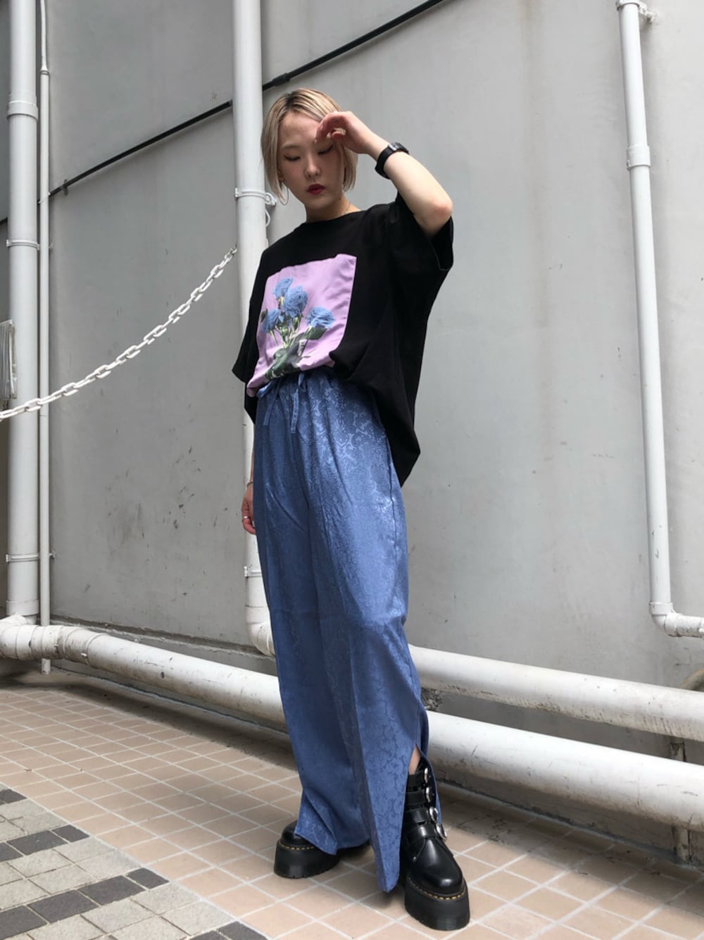 スーパーBIG TEE×ストレートパンツのゆるっとコーデ。 前だけボトムインする事でラフになり過ぎません。 足元はスリットが入ってるのでフレアパンツぽくも見えて脚長効果ありです☺︎