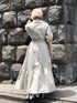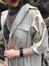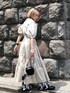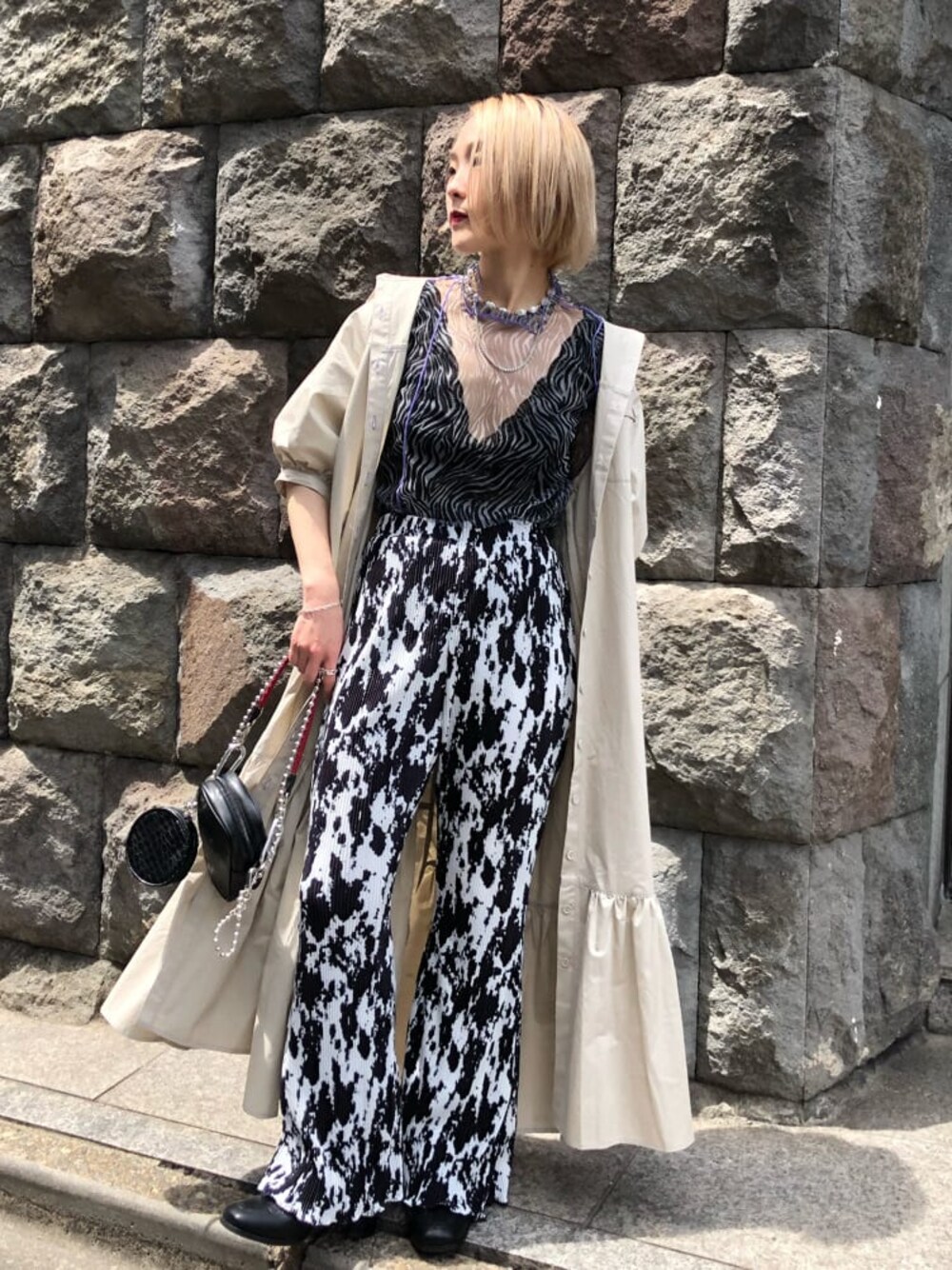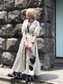 白×黒×紫で統一したコーデ。トップスとボトムは似たような柄合わせでセットアップ風にし、シンプルなカラーステッチワンピースを羽織りにする事で上品なスタイルに☺︎羽織スタイルでもウエストにベルトを巻くことで腰位置が上がり足長効果になります◎