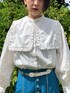 白と青で色味を統一させ、クラシカルかつ爽やかにしたコーデ☺︎ 【トップス】取り外しが出来る襟がポイントのブラウス。前後で形も違うので気分で変えられますし完全に取り外しが出来るので、Tシャツやプルオーバーにレイヤードもできます◎襟を外してノーカラーブラウスとして着るのもオススメ☺︎ 【パンツ】ウエストは後ろがゴムなので苦しくなりすぎず着られます☺︎フレアデザインですがセンターラインがある事によって、より脚長効果になります◎ 【アウター】毎年人気のダウン!今回はオーバーシルエットでメンズライクに着られます。裾にドローコードがついてるので絞ると少し丸みが出てガーリーなアイテムとも合わせやすくなります◎