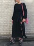 シンプルだけどjouetieらしさを取り入れた大人コーデ☺︎ 【パンツ】クラシカルな花柄のフレアパンツ。私の身長だとくるぶしより少し長めなのでソールが高い靴を合わせる事でより脚長効果に見えます!ぺたんこシューズを履くときはウエストを1回折ると少し短くなり履きやすい丈に◎ 【ワンピース】プリーツスカート、ベルトがセットのワンピース。スカートは取り外し可能なのでフレアパンツやショートパンツを合わせてロングブーツのスタイルも◎少し透け感のある素材なので、キャミやブラトップを着る事をオススメします!セットのスカートはウエストが全てゴムになっており楽チンで、長さはワンピースよりも長めで154cmでくるぶしぐらいの丈となってます。少し光沢感のある生地でスカートだけでも上品に着られます。