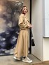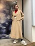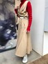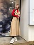 オフィスカジュアルなコーデにさし色の赤とスニーカーを合わせる事でストリート要素のあるコーデに☺︎ 【セットアップ】トレンチコート見えするセットアップ。ベストもついており3点セットとお得感満載!生地感は薄手でサラッとしているので、軽い羽織としても使え、春夏にも活躍してくれます。ボリュームのある袖が二の腕周りをカバーしてくれ女性らしいシルエットに◎ベストはトップスとして着ても良いし、ロンTやシャツにレイヤードしても可愛いです♡ジャケットとベストどちらも腰骨ぐらいのショート丈なので腰位置が高く見えスタイルアップに◎スカートは154cmでも足首がしっかり見えるぐらいの丈のAラインのフレアスカート。シワになりにくい素材なのでオフィス等で長時間座る方もお尻周りのシワが気になりづらいです。ポケットがついてるのも嬉しい◎ 【インナー】毎年大人気のベーシックタートルニット!細身ですが伸縮性があり着やすいです。首元は高めなので、息苦しく感じる方はもう一回折ると首詰まりが和らぎます。