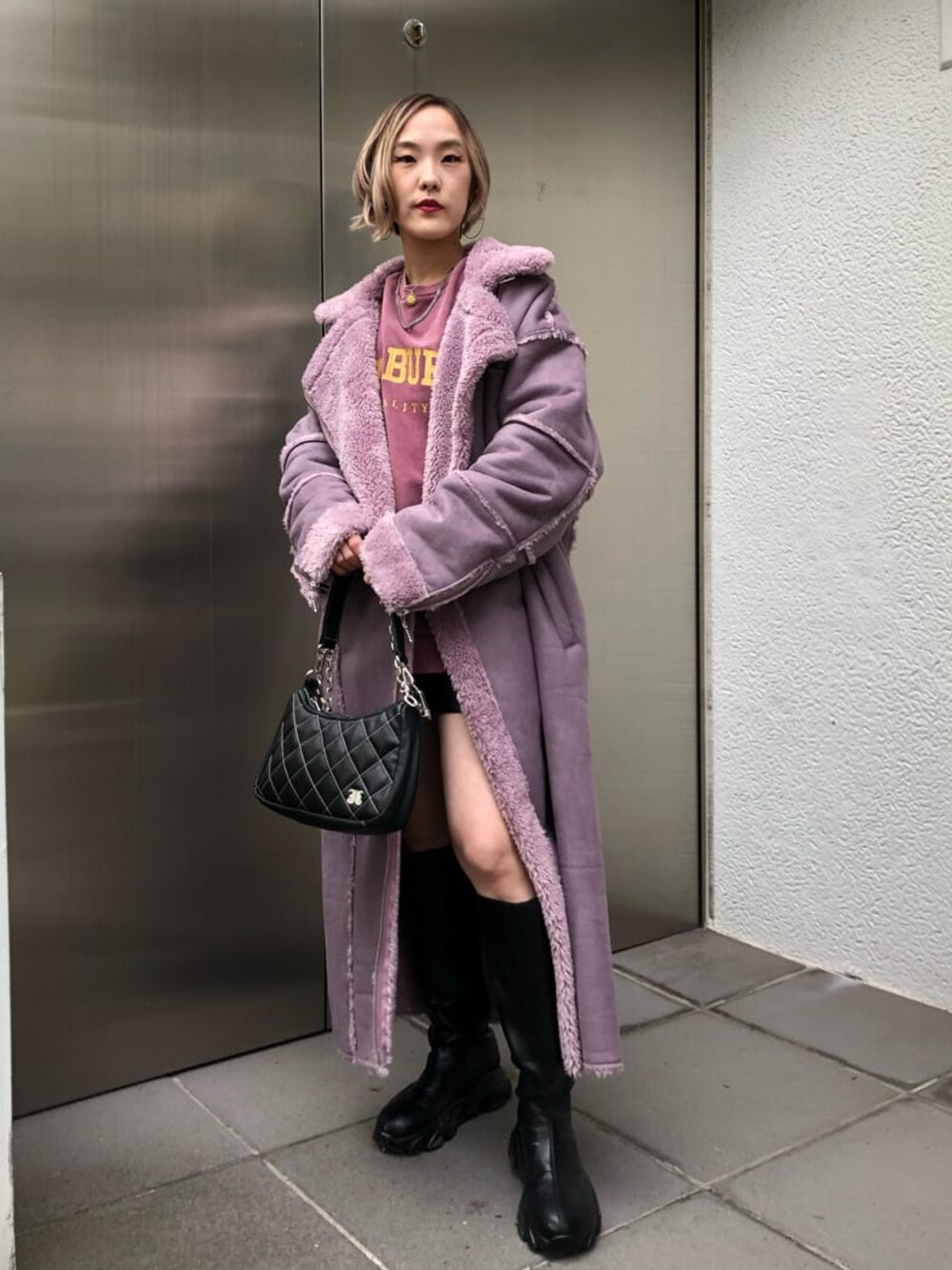 MAYU(jouetie)のムートンコート「エコムートンライダースロングコート」を使ったコーディネート