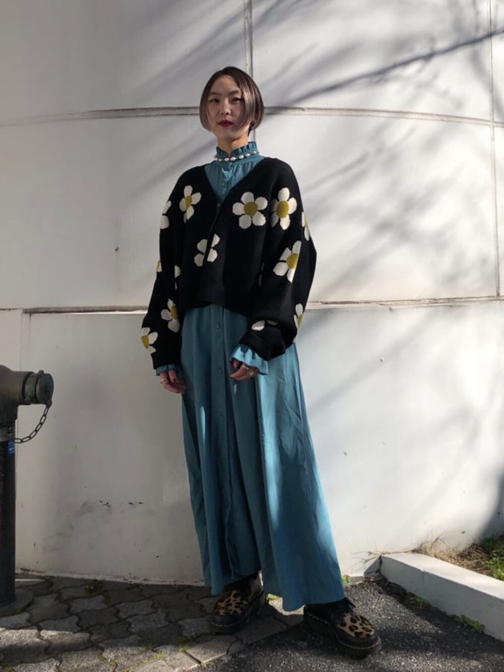 【カーディガン】モチっとしたニットで暖かさ◎厚手すぎないのでアウターを上から着ることもできます。大ぶりのクリアボタンがアクセントに。154cmで腰骨ぐらいの丈なので、ワンピースでもバランス良く着れ、カジュアルにデニムパンツでも◎【ワンピース】プルオーバーレイヤードワンピースのセットのワンピースを着用。前ボタンの為、羽織りでも着れます。154cmでくるぶしぐらいの丈でウエストの切り替えしが腰位置高く見せてくれます。スタンドカラーもボタンを2つ程開けて開襟ぽくしても◎袖のフリルをレイヤードした袖口から出すと可愛らしく着れます◎