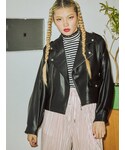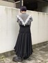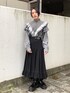 【トップス】大ぶりのフリルが可愛いブラウス。154cmでお尻が隠れるぐらいの丈なので、ショートパンツで合わせて1枚で着ても可愛いです。襟元のボタンを一つ開けて開襟風に着るとスッキリした印象に◎ 【アウター】袖口にタックが入ったボリュームスリーブのライダースジャケット。154cmで腰ぐらいの丈でどのボトムでも相性◎袖のボリューム感が強い印象になりすぎず柔らかさが出ます。 【ボトム】アシンメトリーのスカート。腰回りは少しタイトですが、裾のボリュームのあるフリルが動いた時可愛く広がります。154cmで短いところは足首がしっかり見え、長いところはくるぶしぐらいの丈なのでスニーカーでも大丈夫◎ウエストのベルトで細見え効果絶大です!