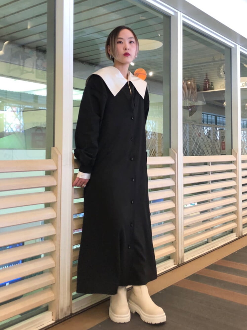 【ロンT】メンズライクなデザインとシルエットがポイント☺︎154cmでお尻はすっぽり隠れます。袖部分も長めですが手首のリブがしっかりしているので、作業時でも邪魔になりません。ロゴのカラーに合わせたレイヤードスタイルもオススメ◎ 【インナー】ウエストリボンブラウスを着用。そのままでも可愛く着られますが大きめの襟なのでレイヤードしても◎サテン生地で少し高級感をプラス。【ワンピース】ジャケットディテールのワンピース。ロング丈ですが後ろにスリットが入ってるので重たい印象にならずに着られます。素材も軽いので動きやすく、前開きできるので羽織で着ても◎154cmで足首が見える丈なのでスニーカーでも安心です☺︎