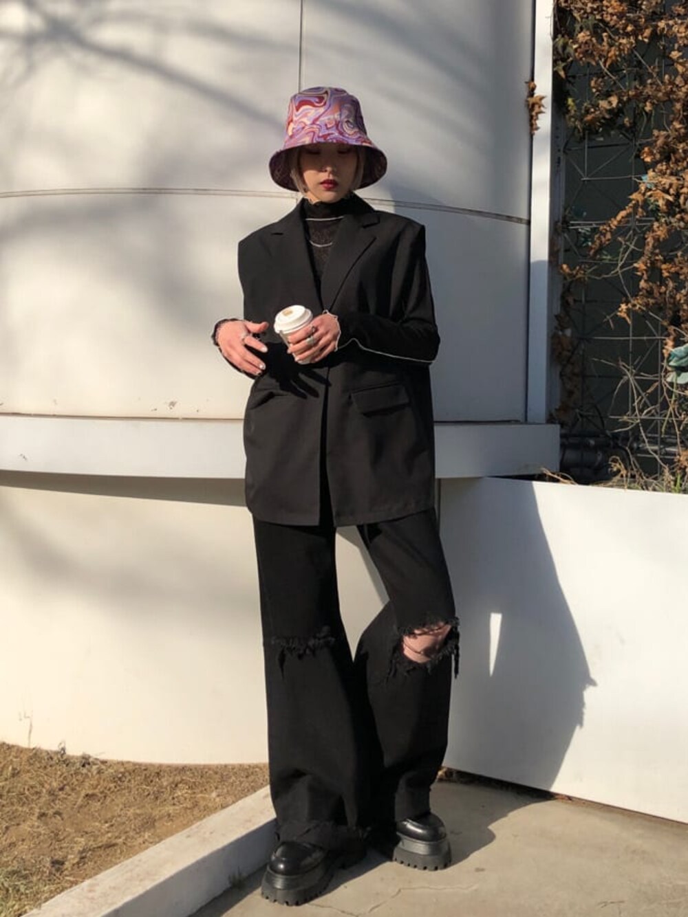 【シアートップス】程良い透け感でブラトップやキャミソールと合わせれば一枚でも着られます。少しハイネックなのでロンTやシャツなどとレイヤードしても◎【ジレ】オーバーシルエットで154cmでお尻が隠れる長さ。サラッとしており生地も軽い為、インナーを変えるだけでオールシーズン着られます。BIGシャツやワンピースと合わせるのもオススメ◎【ボトム】154cmでSサイズ着用。厚手のソールを履くか少しだけロールアップすれば地面につく心配はありません。ハイウエストで履けるので、ショートトップスやトップスインのスタイルが綺麗なシルエットになります☺︎