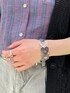 【カーディガン】透かし編みニットのカーディガン。柔らかい素材で着心地◎154cmでお尻がしっかり隠れる丈です。袖は少しボリュームがあるので華奢に見えやすく、気温が不安定な今の時期にピッタリの1枚です。【シャツ】麻100%のシャツで通気性抜群!少しハリのある生地感で軽くて着やすいです。154cmで腰骨ぐらいの丈でタイトではないので体型カバー出来ます◎ボタンを開けて羽織りとしても活躍します◎【ベルト】ベルトループがないボトムやワンピースやオーバートップスの上からも付けられる便利なベルト。クリアでシンプルですが、コーデのアクセントになります◎ 【バングル】ヴィンテージ感のあるシルバーがポイントのバングル。ゴムなので着脱がラクです。ロンTの袖の上につけても存在感がありアクセントに☺︎