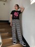 ロックテイストの楽チンコーデ☺︎【トップス】少しピタッとサイズのチビT。154cmでおへそぐらいの丈感。少し伸縮性があり着心地◎少しタイトめなのでレイヤードもしやすいです。【パンツ】ウエストがオールゴムの楽ちんパンツ。股上が隠れるぐらいの裏地があるので透け感を気にせず安心して着られます。154cmで床にスレスレなのでウエストを折り返すか厚底靴を履く事をオススメします。