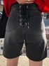 【トップス】かなりゆったりサイズのTシャツ。154cmだとお尻がしっかり隠れる丈で薄手で柔らかい生地感なので着心地抜群◎袖を折り返すと少しスッキリとした印象に☺︎【ボトム】デニムのハーフパンツですが、バックレースアップ仕様なので少しサイズ調整が出来ます。裾をロールアップするとショートパンツとしても着られます◎【ブーツ】 スニーカーソールなので軽くて歩きやすいです!レースアップなので自分の脚に合ったサイズ感を調節でき、後ろにはファスナーが着いてるので着脱もラクです◎ミニ丈やスリットアイテムと合わせるだけでなく、秋冬は防寒対策としてロングスカートや薄手のパンツをブーツインして履いても可愛いです☺︎ 【バッグ】A4ファイルやライブのうちわが入るサイズのバッグ。ボールチェーンなので物を詰