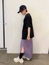 スカートでもストリートに☺︎【トップス】154cmでお尻が隠れる丈のゆったりとしたTシャツ。薄すぎない生地感ですが、白はインナーを着た方が透けずに安心して着られます。前後にデザインがあるので1枚で着ても存在感◎ 【インナー】しぼしぼっとした素材のトップス。少しハイネックなのでレイヤードアイテムとしても活躍◎154cmで腰骨ぐらいの丈。【スカート】セットアップ対応のスカート。154cmでくるぶしぐらいの丈でウエストはゴムなのでラクに履けます◎また、ベルトループも付いてるのでウエストが緩くてもベルトを巻くこともできます。両サイドに深めのスリットが入ってるので歩きやすく、裏地も付いてるので透け感を気にせず履けます。【キャップ】NEW ERAコラボキャップ!後ろでサイズ調整ができ、余ったベルトは隠せれます。シンプルなデザインなのでコーデにプラスしやすいです☺︎ 【シューズ】FILAとのコラボアイテム!厚底ですが軽いので長時間履く際にも疲れづらいです☺︎ビジュー取り外しできるのでシンプルスポーティにも履けます◎