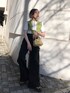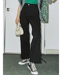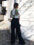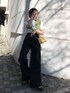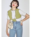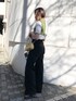 【トップス】伸縮性のあるテレコ生地で着心地◎1枚でも存在感があるのでシンプルなボトムとの相性もいいです。154cmで腰丈ぐらいなのでボトムインもしやすいです。【パンツ】サイドがレースアップになっているフレアデニム。股上まで裏地があるのでレースアップの隙間から下着が見える心配はありません◎Sサイズ着用で154cmだと床スレスレ(紐は床についてしまう)で厚底靴やヒールと合わせるのがオススメです◎ 【バッグ】ボールチェーンは取り外し可能なのでハンドバッグとして持っても◎コンパクトサイズですが必要最小限の必需品は入れて頂けます。
