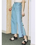 カラーを使ったカジュアルコーデ☺︎【トップス】パワショルデザインで女性らしいサマーニットカーデ。154cmで腰骨ぐらいの丈でチクチク感なく着られます。開けて羽織でも◎【インナー】FILAコラボのキャミ。アジャスターで肩紐の調整ができます。ラメ感がコーデのアクセントになりますが、痒みの心配がある場合はブラトップなどとの着用をオススメします。【パンツ】サイドがレースアップになっているフレアデニム。股上まで裏地があるのでレースアップの隙間から下着が見える心配はありません◎Sサイズ着用で154cmだと床スレスレでスニーカーでも履けますが厚底靴やヒールと合わせるのがオススメです◎ 【バッグ】ワンハンドマルチBAGとポーチがセット。ポーチは手のひらぐらいのサイズ感でちょっとした小物を入れる時に便利です◎チェーンは取り外し可能。