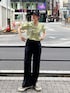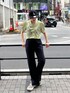 ストリートミックスコーデ☺︎【キャップ】NEW ERAコラボキャップ!後ろでサイズ調整ができ、余ったベルトは隠せれます。シンプルなデザインなのでコーデにプラスしやすいです☺︎【トップス】サテン生地でサラッとしており、154cmで腰骨ぐらいの丈。パワショルデザインで女性らしいのでスカートはもちろんパンツとの合わせも◎【パンツ】コットンレースのフレアパンツ。ピタッとしすぎないので締め付けのストレスはありません。股上部分に裏地がついてるので透ける心配はなく、オールゴム&紐でウエストの調整もしやすいです。154cmでくるぶし少し下でスニーカーでも着れますが、厚底靴だとより床につく心配なく着られます。