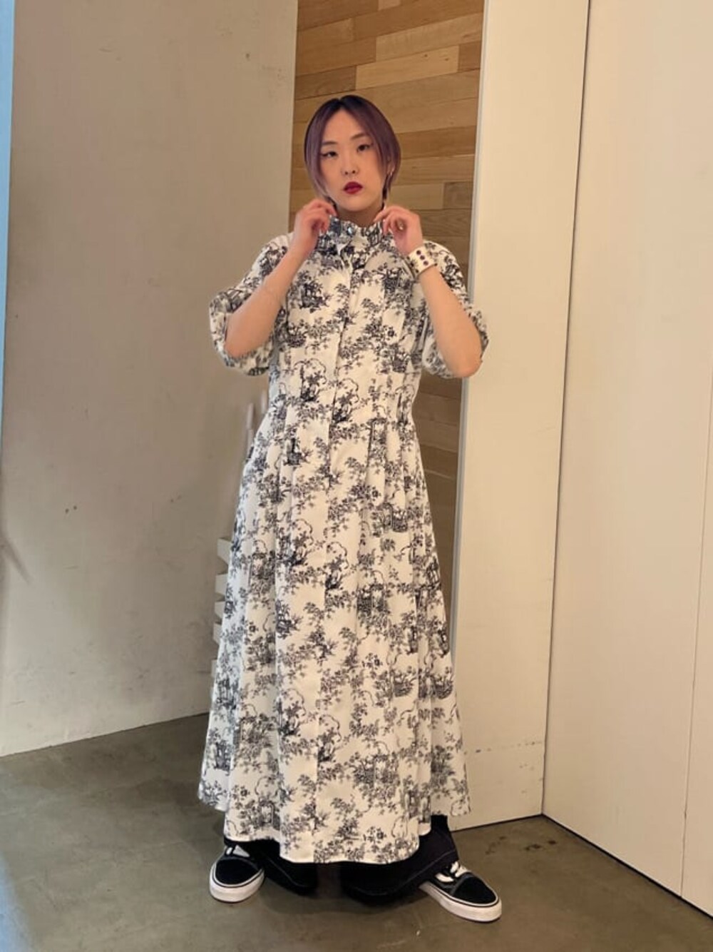 モード系コーデ☺︎【ワンピース】上品さのある柄のワンピース。154cmで足首が見える丈で、薄手でサラッと着やすく涼しいです。ホワイトはセットで肩紐の調節ができるキャミインナーがついており、透けの心配なく着られます。1.2個ほどボタンを外して襟を寝かせれば開襟風に◎【パンツ】さらっとした素材でゆるっと履き心地の良いパンツ。154cmでくるぶしぐらいでスニーカーでも◎ウエストに紐ゴムがありサイズ調節できます。カラーステッチでシンプル過ぎず着られます。