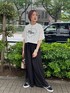シンプルモノトーンコーデ☺︎【トップス】大きなハートデザインが可愛いクロップドTシャツ。前後に刺繍が施されておりシンプルですがアクセントに◎154cmで腰骨ぐらいの丈でゆったり着られるので二の腕周りは体型カバーできます。お腹が見えたくない方はインナーを着る事をオススメ。 【パンツ】さらっとした素材でゆるっと履き心地の良いパンツ。154cmで床すれすれですがスニーカーでも◎ウエストに紐ゴムがありサイズ調節できます。カラーステッチでシンプル過ぎず着られます。【バッグ】オリジナル柄のバッグ。上品なデザインで大人っぽく使えます。外側と中側にポケットもあり利便性◎ボールチェーンがついてるので肩掛けも出来ます。