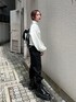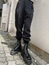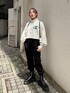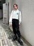 モノトーンストリートコーデ☺︎【トップス】ショート丈スウェットで154cmで腰骨ぐらいの丈。袖口はボリュームがあるので華奢な印象に着られます。ハーフZIPを上げて着ても、下ろしてタートルなどをレイヤードしても◎【パンツ】ウエストの後ろ部分はゴムなのでラクに履け、サイドのベルトで少しウエスト調節も出来ます。足首のリブがゴムでしっかり止まるので154cmでも床につくことなく、テロっと柔らかい生地でシワになりにくく薄手なので動きやすいです。【ブーツ】ファスナーで着脱がしやすいブーツ。ツヤ感のあるレザーで少し硬めなので靴擦れの恐れがあるので、最初の方は長めかつ厚手の靴下を履くことをオススメします。厚底ソールで脚長効果抜群ですが、重さがあるので不慣れだと長時間履くと疲れを感じてしまう場合も。黄色のシューズ紐がセットで付いているので替えても◎ 【バッグ】紐の付け方で持ち方を変えれるナップサック。口を塞がずトートバッグとして持つならA4のファイルも入れて頂けます◎
