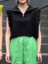 【※Instagramのリールに詳細あり‼︎】 【トップス】トップスとしてもレイヤードアイテムとしても楽しみやすいニットベスト。154cmで腰骨ぐらいの丈でハイウエストのボトムと相性◎脇部分は広めなのでゆったりとしたアイテムともレイヤードできます。柔らかい生地で着やすいですが、吸水性が低めなので気温が高い日は暑いと感じてしまう場合があるので背中までしっかりインナーを着る方が涼しく着られます。 【パンツ】ルーズシルエットのパンツ。カラーステッチがセンターにある事でお尻や太ももをカバーしつつも短足に見えません。154cmだと床に届いてしまう長さですが、足首周りが少ししぼまっているので靴を履けば床に着きづらくロールアップして履いても◎生地感は薄手で冬場はタイツなどをインナーに履けばオールシーズンで使えます。メンズライクなパンツなので、どのトップスを合わせてもストリートMIXなコーデにして頂けます。 【シューズ】厚底なのに軽いローファー。クッション性のある中敷で長時間履いても疲れづらいです。存在感のあるビットがきれいめにもカジュアルにもスタイリングできます◎