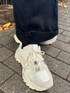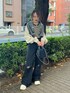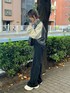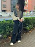 モノトーンコーデ☺︎【アウター】チャイナデザインのエコレザージャケット。柔らかい質感で大人っぽく高級感があります。腕周りはゆったりしているのでプルオーバーなども羽織れます。クロップド丈なのでハイウエストボトムと合わせると脚長効果抜群!ワンピースとの相性も◎ 【トップス】UネックとVネックの前後2wayで着られるサマーニットベスト。カップ付きインナーを着ればノースリーブとして着られます。サマーニットなので通気性があり、伸縮性もあるので着心地がいいです。 【ボトム】154cmでSサイズ着用。厚手のソールを履くか少しだけロールアップすれば地面につく心配はありません。ハイウエストで履けるので、ショートトップスやトップスインのスタイルが綺麗なシルエットになります☺︎ 【シューズ】FILAとのコラボアイテム!厚底ですが軽いので長時間履く際にも疲れづらいです☺︎ビジュー取り外しできるのでシンプルスポーティにも履けます◎