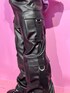 ストリートコーデ☺︎【プルオーバー】キルティング素材の袖は取り外しができる2WAY使用。ゆるっとオーバーシルエットで柔らかい裏毛のプルオーバーで着心地抜群です。154cmでお尻がすっぽり隠れるので1枚着でも◎【ロンT】シンプルなボーダーロンT。154cmでお尻が隠れる丈。首元は鎖骨ラインが出るくらい広めで袖口も広くゆるっと着やすいです。【ボトム】細身なシルエットのカーゴパンツ。柔らかいエコレザーで高見えします。154cmだと床につくので厚底靴の着用がオススメ。ウエストはサイドにボタンがあるので少し調節が出来ます。【ブーツ】ファスナーで着脱がしやすいブーツ。少しマット感があるレザーで少し硬めで靴擦れの恐れがあるので、最初の方は長めかつ厚手の靴下を履くことをオススメします。厚底ソールで脚長効果抜群ですが、重さがあるので不慣れだと長時間履くと疲れを感じてしまう場合も。