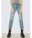 カジュアルコーデ☺︎ 【トップス】 チャイナディテールが落とし込まれたルーズシルエットのプルオーバー。両胸に刺繍が施されており高見えに◎154cmでお尻が隠れる丈で1枚着でも可愛いです!薄手の生地感なので真冬はタートルネックをレイヤードして温度調節するも良し◎ 【パンツ】 154cmでMサイズを着用。太ももやお尻辺りがゆったり履きたい方はM、Sだと少しヒップラインが出るくらいですがシルエットがかなり綺麗です。ロールアップ部分を下げると地面に少しつく丈感。フロント部分は全てボタンで留めるのでシルエットが綺麗に履けます。膝のダメージは膝の位置ぐらいにくるので動きやすいです。着用していくと少しずつダメージの広がりがあるので、ヴィンテージ感を楽しめます☺︎ 【ブーツ】 ファスナーで着脱がしやすいブーツ。少し硬めのマット感のあるレザーで靴擦れの恐れがあるので、最初の方は長めかつ厚手の靴下を履くことをオススメします。手入れをすればツヤ感が出ます◎厚底ソールで脚長効果抜群ですが、重さがあるので不慣れだと長時間履くと疲れを感じてしまう場合も。