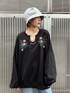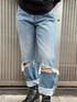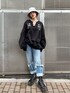 カジュアルコーデ☺︎ 【トップス】 チャイナディテールが落とし込まれたルーズシルエットのプルオーバー。両胸に刺繍が施されており高見えに◎154cmでお尻が隠れる丈で1枚着でも可愛いです!薄手の生地感なので真冬はタートルネックをレイヤードして温度調節するも良し◎ 【パンツ】 154cmでMサイズを着用。太ももやお尻辺りがゆったり履きたい方はM、Sだと少しヒップラインが出るくらいですがシルエットがかなり綺麗です。ロールアップ部分を下げると地面に少しつく丈感。フロント部分は全てボタンで留めるのでシルエットが綺麗に履けます。膝のダメージは膝の位置ぐらいにくるので動きやすいです。着用していくと少しずつダメージの広がりがあるので、ヴィンテージ感を楽しめます☺︎ 【ブーツ】 ファスナーで着脱がしやすいブーツ。少し硬めのマット感のあるレザーで靴擦れの恐れがあるので、最初の方は長めかつ厚手の靴下を履くことをオススメします。手入れをすればツヤ感が出ます◎厚底ソールで脚長効果抜群ですが、重さがあるので不慣れだと長時間履くと疲れを感じてしまう場合も。