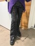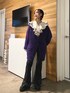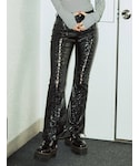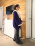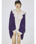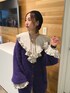 パープルを使った甘辛MIXコーデ☺︎ 【カーディガン】 毛足の長いニットのカーディガン。ふわふわモチモチでずっと触っていたいぐらい肌触りがいいです。ゆったり大きめですが軽く、プルオーバーなどの厚手のアイテムでも羽織れます。ハンガーにかけてしまうと伸びてしまうので、畳みでの保管がオススメ。静電気が起きやすいので、綿素材のアイテムとの合わせがオススメです。 【ブラウス】 襟と袖が大ぶりのフリルで甘さのあるコーデができるブラウス。154cmでお尻が隠れる丈なのでミニワンピース風に着ても可愛いですし、グランジTシャツなどの上から羽織るもよし◎シワになりにくいですが、静電気が起きやすいので綿アイテムとの合わせがオススメです。 【パンツ】 フロント部分がレースアップになっておりよりスタイルアップが図れるフレアパンツ。 エコレザー素材ですが、柔らかめなのでツッパリ感なく履けます◎ 154cmでMサイズ着用だと少し長いので厚底靴がオススメ。Sサイズだとスニーカーでも◎ 【ブーツ】 ファスナーで着脱がしやすいブーツ。少し硬めのツヤ感のあるレザーで靴擦れの恐れがあるので、最初の方は長めかつ厚手の靴下を履くことをオススメします。厚底ソールで脚長効果抜群ですが、重さがあるので不慣れだと長時間履くと疲れを感じてしまう場合も。黒と黄色のシューズ紐がセットで付いているので替えても◎