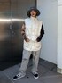 ストリートコーデ☺︎ 【トップス】 ハーフボタンのテレコトップス。タイトめですが伸縮性があり着やすく肌触りも◎オリジナルのタイダイ染めでコーデのアクセントになります。 【ベスト】 154cmでお尻が隠れる丈のオーバーシルエットで、ウエストのドローコードを絞る事でスッキリした印象に着られます◎とことんストリートに合わせても良いし、ワンピースやスカートと合わせたスタイルもオススメ◎
