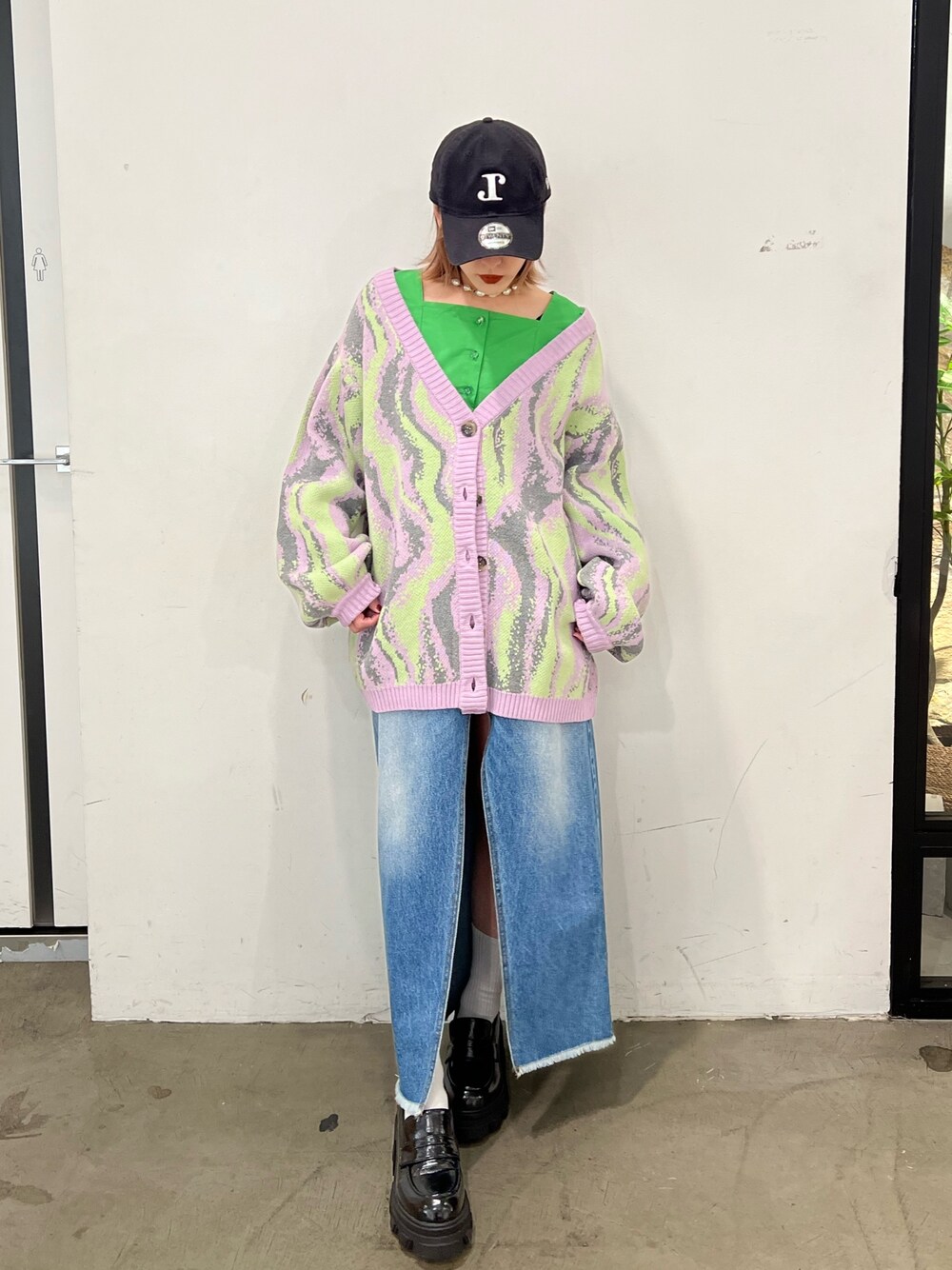 【トップス】 鎖骨が出るので大人ぽく綺麗なシルエットのトップス。 お腹が出る短めの丈なので、ハイウエストボトムと相性抜群です◎ 【カーディガン】 ゆるっとオーバーシルエットのカーデ。 毛玉になりにくく柔らかい着心地で春カラーで気分が上がります☺︎ 【ボトム】 深めにスリットが入ってますが、中はショートパンツなのでミニ丈をあまり履かない方でも挑戦していただきやすいです◎ 【シューズ】 厚底ですが軽く高低差が少ないので疲れづらいです◎ 【キャップ】 NEW ERAコラボキャップ! 後ろでサイズ調整ができ、余ったベルトは隠せれます。 シンプルなデザインなのでコーデにプラスしやすいです☺︎