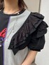 モノトーンコーデ☺︎ 【ワンピース】 両サイドに大きめにスリットの入ったノースリーブワンピース。 カットソー素材で楽チンです◎ 足が見えたくない方はフレアパンツと合わせると◎ 【ブラウス】 コットン素材のフリルブラウス。 コーデにプラスするだけで甘さを足すことができます◎ 【バッグ】 大容量で軽く、内ポケットもあるバッグ。 パソコンやうちわはもちろん、小旅行の際にも活躍できそう◎