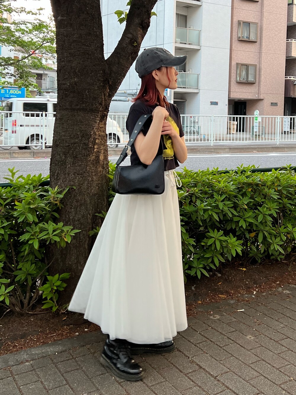 【トップス】 キャッチーなプリントのクロップドT。 ハイウエストボトムと相性◎ピタピタしすぎず着やすいです。 【スカート】 フロントのレースアップでスタイルアップに◎ チュールを贅沢に4枚重ねしてますがボリューミーになりすぎず動いた時の揺れ感がかわいいです。 レースインナーショートパンツと一緒に着用すれば透け感も気にせず履けます!