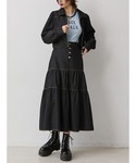 【セットアップ】 ジャケット→春ジャケットにぴったり! 手首をロールアップすればこなれ感がでます。 スカート→ウエストがゴムで楽に履けます。 154cmでくるぶしぐらいの丈。 カラーステッチがアクセント!