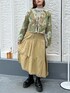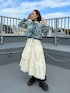 【アウター】 柔らかいゴブラン生地で春アウターとしてはもちろん、トップスとしての着用も可能。 フロントのリボンは結ばずに垂らしても◎ 【スカート】 アシメデザインですが、154cmで長いところで足首ぐらいの丈。 ウエストはゴムで楽に履け、ポケットもある優れもの!