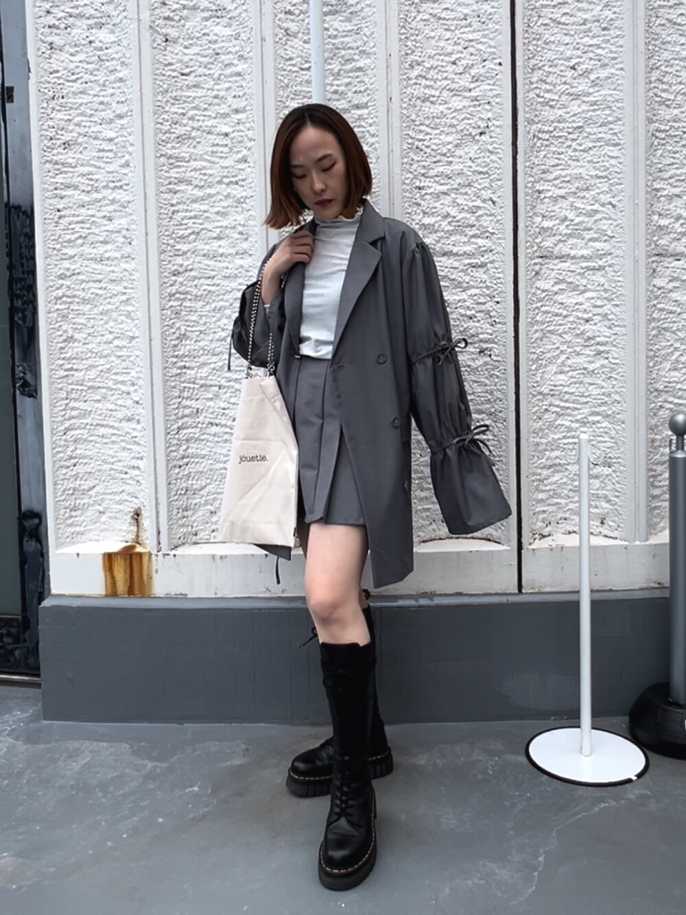 MAYU(jouetie)のワンピース「スリーブリボンジャケットミニワンピース【セットアップ対応】」を使ったコーディネート