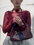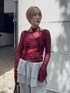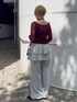 【トップス】 154cmで腰骨ほどの長さの総レースのトップス。 程よくデコルテラインを出すことができ、ギャザーデザインとチョーカーがセットなので、見せインナー着用でそのまま一枚でも決まります。 袖が少しフレアになっているので、Tシャツとのレイヤードもおすすめ◎ 【パンツ】 154cmでそのまま履くと床についてしまいますが、裾のドローコードで絞れるので低身長でも◎ スウェット素材なので履き心地抜群! ダル着に見えやすい素材ですが、スカートとのレイヤードデザインで少し甘さをプラス。 シャツなどのキレイめなトップスやシューズとの合わせが気分◎ 【バッグ】 ショルダー部分が広めなので、肩の食い込みも少なく持ちやすいです。 深みのあるボルドーなので、いち早く秋を先取りできます◎ 【シューズ】 普段23.5cmでMサイズ着用。 靴擦れ防止で爪先用ソックスの着用がオススメ。