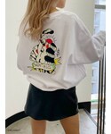 GYDA×Edhardyのコラボアイテムです♡インパクトがあるイラストは目を惹くアイテムなのでシンプルなショートパンツと、今季トレンドのミドルブーツを合わせ、TOPSを主役にしたおすすめコーデです。着丈がジャストサイズなので今の時期ならアウターも羽織りやすいです。春先には1枚で着用できる可愛いアイテムです!