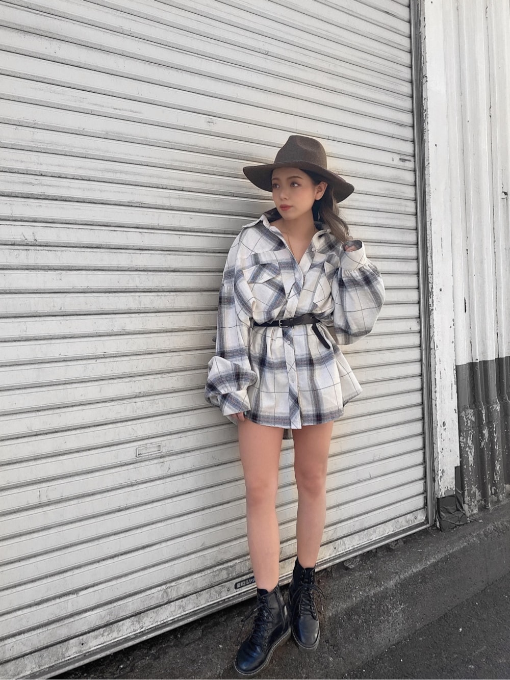 maki(GYDA)のシャツ/ブラウス「ボリュームスリーブBIGチェックシャツ」を使ったコーディネート