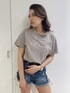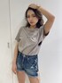 人気CUT T/SのBODYにシーズンテーマを胸にプリントしたアイテムです❤︎首元のCUTと横に入っているCUTは肌魅せできGYDAならではのデザインでカジュアルだけどセクシーに着用して頂けます。下着が見える位置にCUTが入っているのでインナーはboosterブラトップやビスチェを着用するのがおすすめです。私の一推しカラーはベージュ♡グレージュに近い色味でくすみカラーなのが可愛いTシャツです♡今季発売のサイドレースアップショートパンツと合わせ夏らしいコーディネートにしました!ほどよいクラッシュ加工がこなれた雰囲気にしてくれるアイテムです。ショートパンツ×厚底サンダルで美脚効果も〇