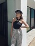 毎年発売しているサークルクロスニットTOPSです。セクシーなデザインがGYDAらしく目を惹くアイテム間違いなしです♡ボディラインに添うのもスッキリ着れるポイント✨ フロントにサークルのデザインがあるのでアクセサリーはピアスやキャスケットなどの小物使いで更にお洒落に着用して頂けます。新作の楊柳プリーツフレアパンツと合わせでトレンド感があるコーディネートにしました。ウエストはゴムになっているので、ゆったりとした履き心地でおうち時間からお出かけにもおすすめな1着です♡細めに施されたプリーツがさりげなく女性らしさを演出してくれTOPを変え幅広いコーディネートを楽しめるアイテムです。